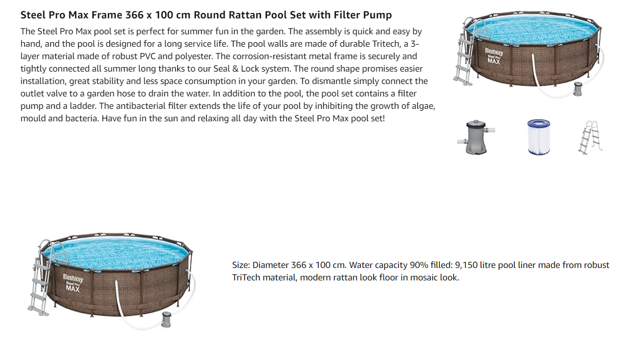 Wobei die Beigefügte Pumpe eher schwach für diesen Pool ist, aber für den Preis vollkommen ok