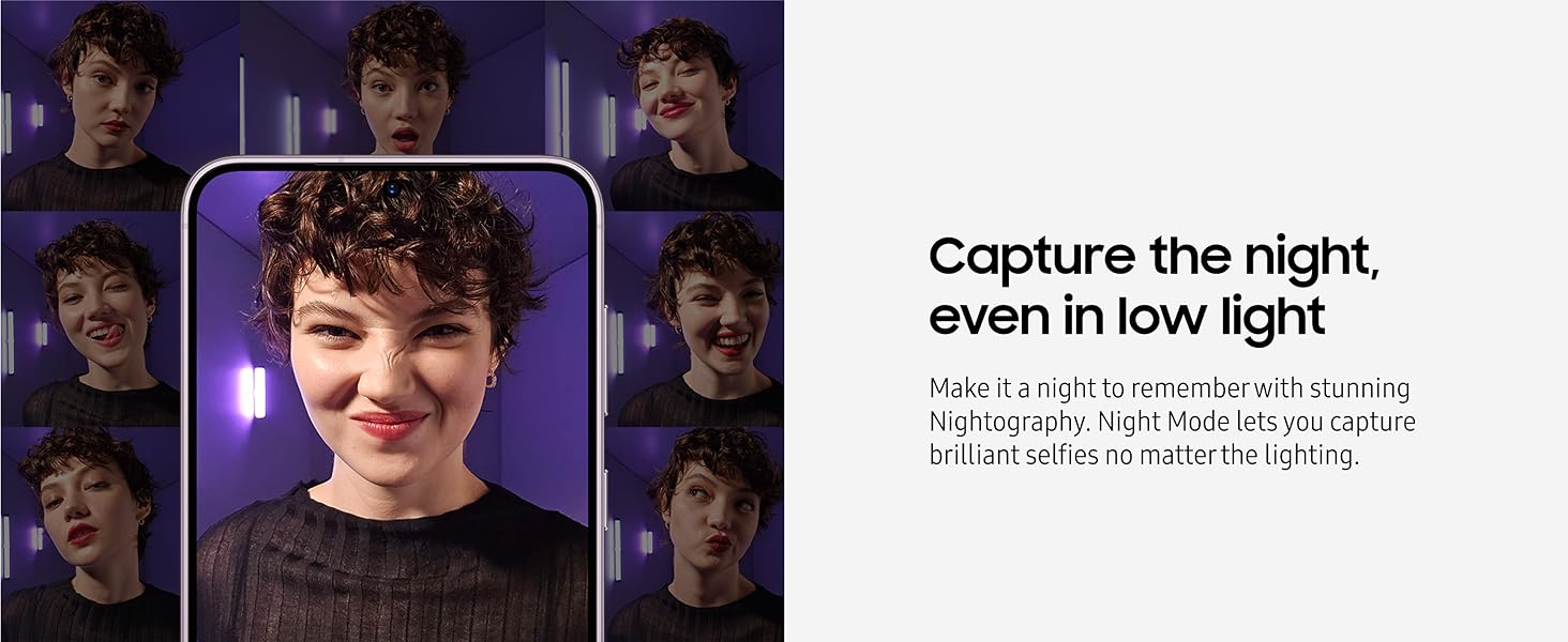 - CAPTURE THE NIGHT IN LOW LIGHT: Whether you’re headed to a concert or romantic night out, there’s no such thing as bad lighting with Night Mode; Galaxy S23 lets you capture epic content in any setting with stunning Nightography