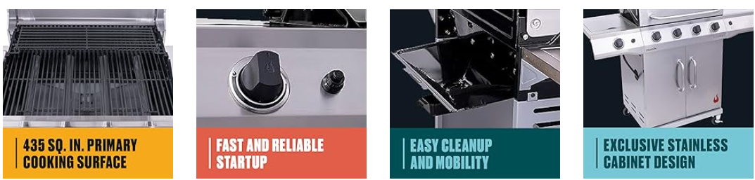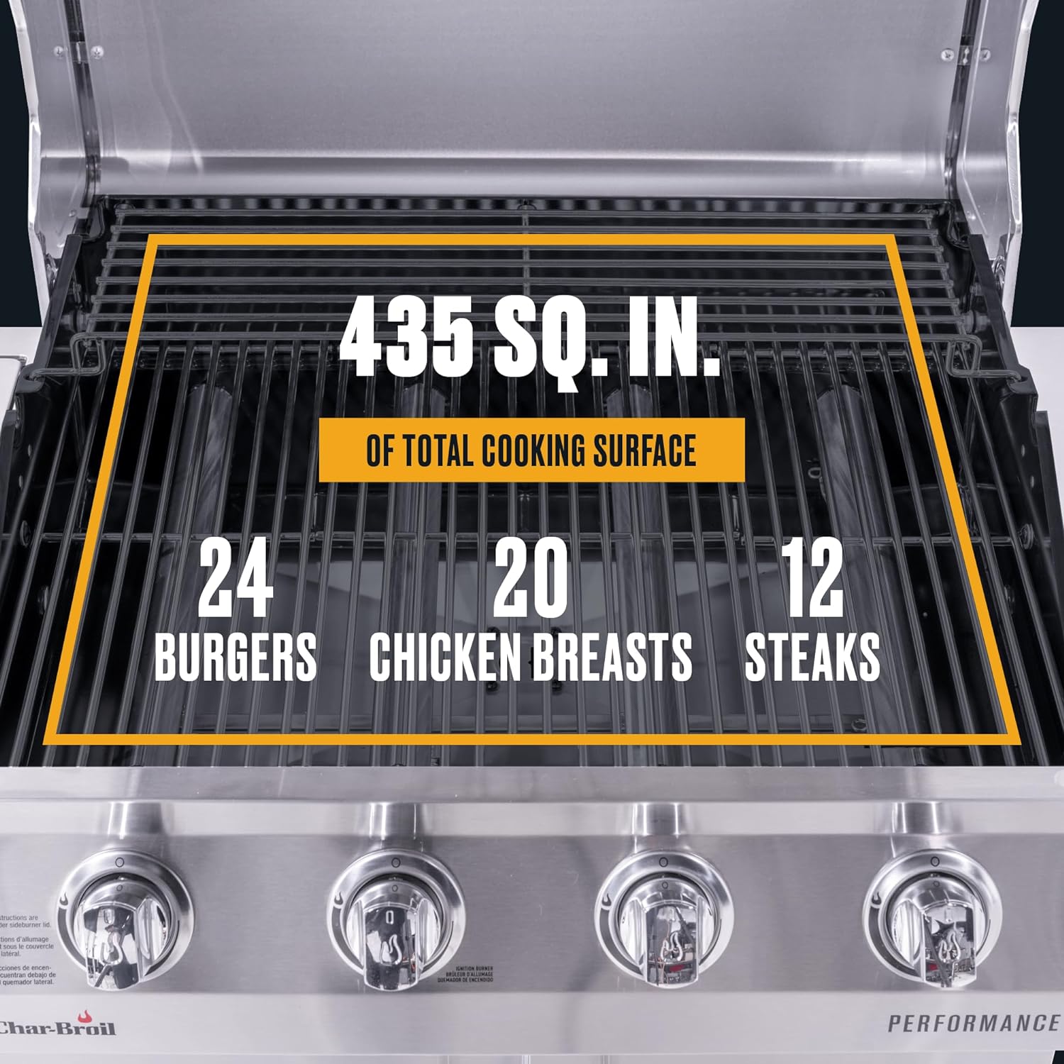 Char-Broil Performance Series Convective 4-Burner with Side Burner Cart Propane Gas Stainless Steel Grill - 463377319.