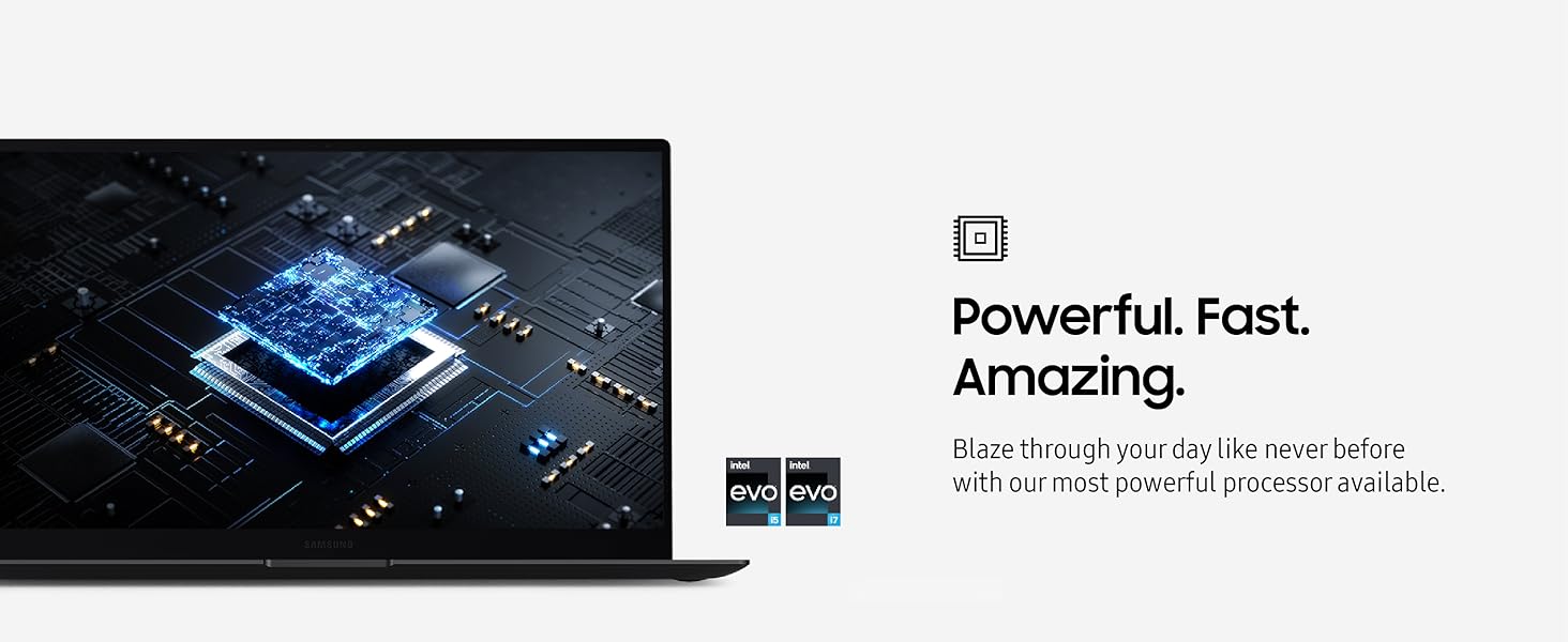 • POWERFUL, FAST, AMAZING: Our new laptop is packed with the premium performance you’ve come to expect from Samsung — plus some; It’s powered by the latest 12th Gen Evo-certified Intel processor, our most powerful available CPU yet