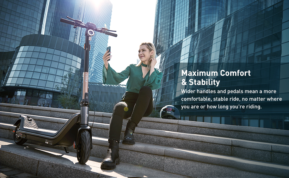 【Smart Ride】 With the NIU App (Via Bluetooth) and LED display, the KQi3 Pro is smart in all the best ways, allowing you to lock your NIU electric kick scooter for peace of mind, check your riding statistics or even customize your speed and cruise control.