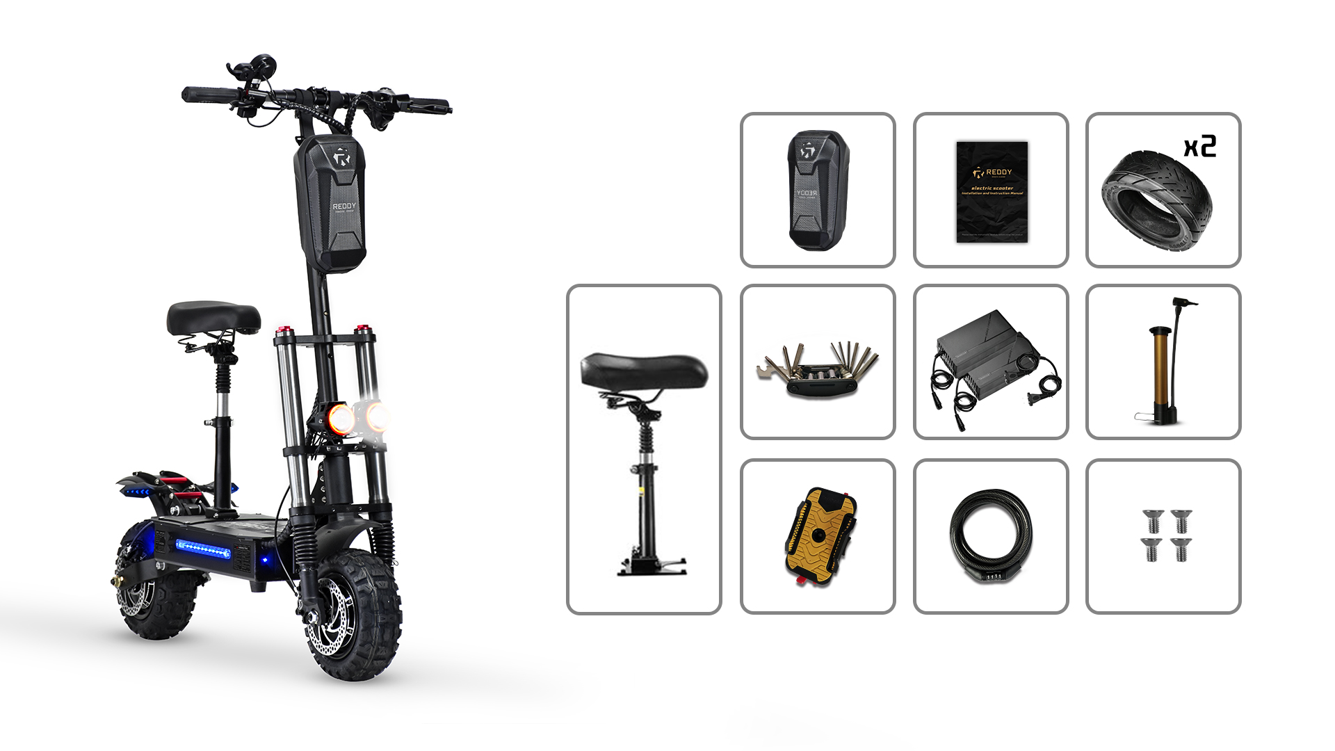 • The height of the electric scooter and seat can be adjusted to suit your height.