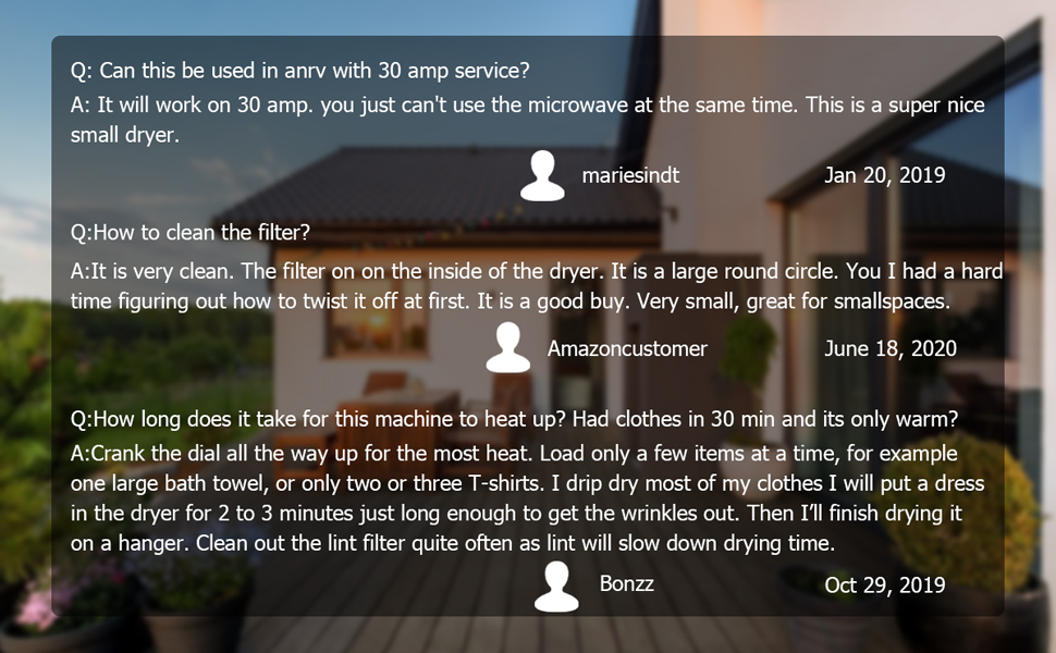 【Multifunction】According to the material and weight of the cloth, you can set the time length or different mode for drying: Cool(0-20mins): cool down the temperature, Warm(30-120mins): dry and cool cloth, Anti-wrinkle, Hot (120-200min): for drying large quantities or bulky item, Air dry(0-80mins) run with cool air to freshening.