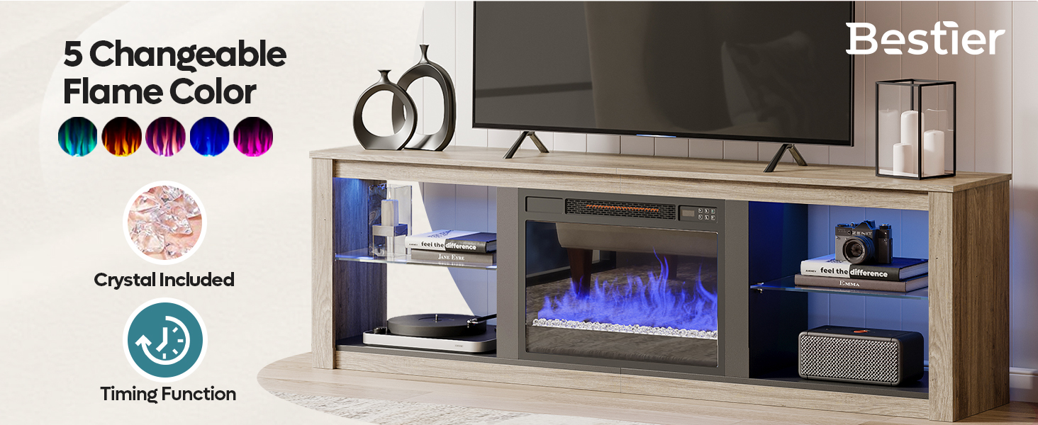 • Modern Design: Made of CARB certified P2 particle board, Bestier fireplace tv stand has great stability and durability.
