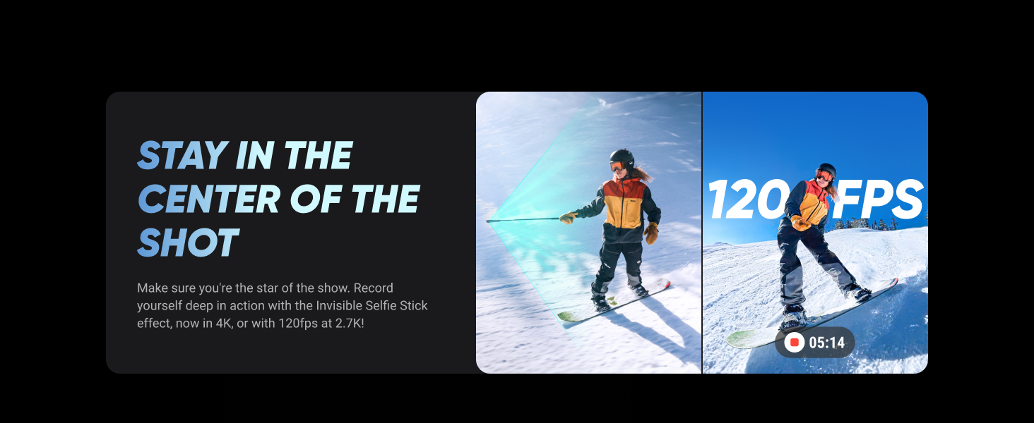 - INVISIBLE SELFIE STICK - The signature third-person Insta360 shot, a specialty of 360 cameras. Immerse your viewers in obstruction-free 360° video, just like you're using a drone or as if you have your own film crew.