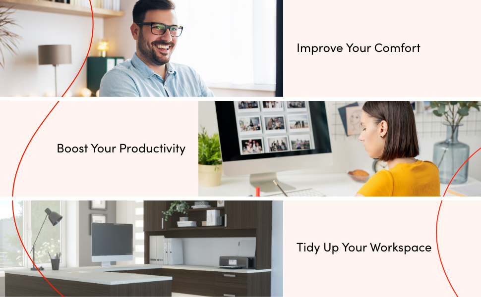 To enhance your productivity when working, our U-shaped desks feature drawers and storage areas that let you keep all your papers or electronics tidy and organized.