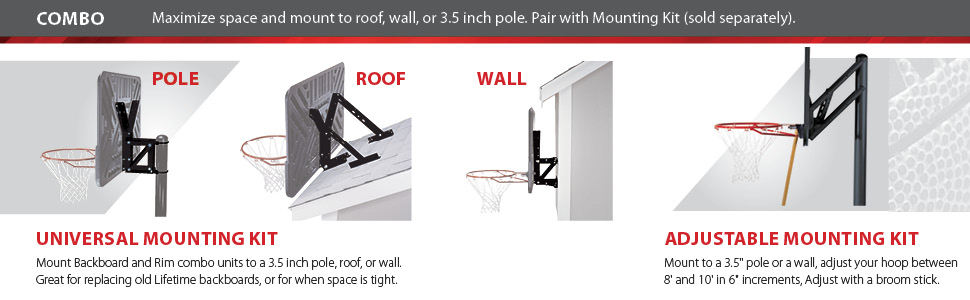 The basketball system comes with a 52-inch-square Shatter Guard backboard made of Makrolon polycarbonate, which is virtually unbreakable and several times stronger than acrylic. When combined with the heavy-duty steel frame and the sturdy steel Y-extension arms, the basketball goal looks and plays just like pro-style glass, with superior rebound effects and terrific stability. The system also includes a three-piece, 3.5-inch round pole with Lifetime's patented pneumatic Action Grip® height mechanism. To change the pole's height--it adjusts from 7.5 to 10 feet in infinite increments--simply activate the Power Lift with one hand and push it to the correct height. And Lifetime knows that dunking and above-the-rim play are a huge part of modern basketball, which is why the basketball goal includes a Slam-It rim. The solid-steel rim features double-compression springs that give way during dunks to protect the player, then spring back once released.