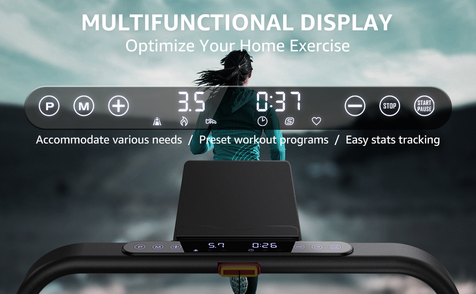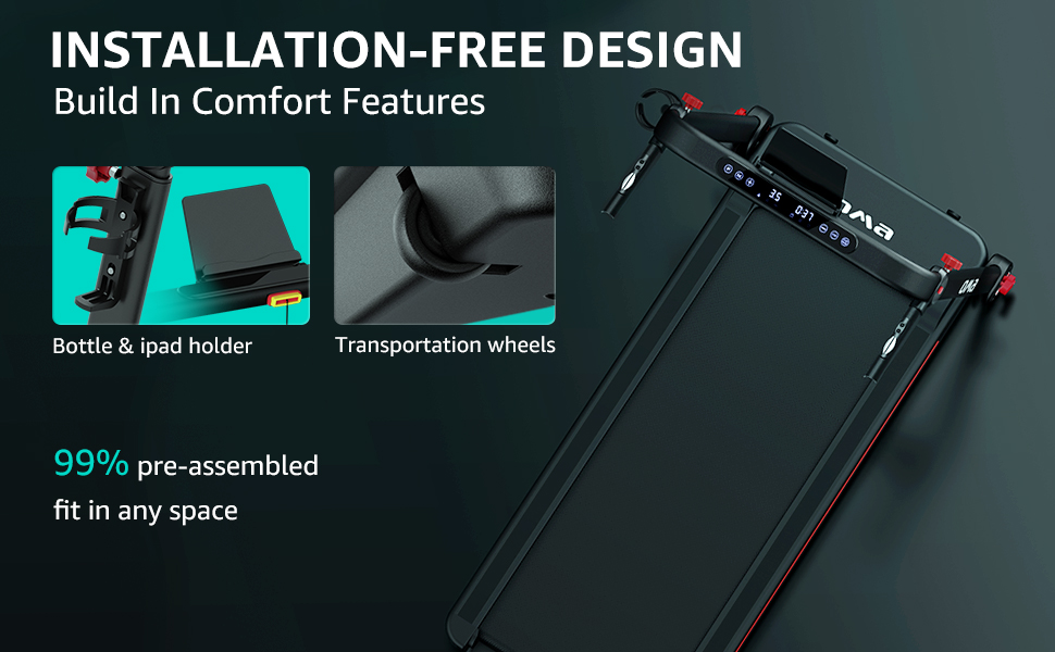 • Easy To Assemble & Use--Our treadmill for home is designed with 99% pre-assembled and can be used directly after out of the box. It only takes about a few minutes to unfold by yourself, very friendly to every home exerciser. Easy to operate, comfortable for walking, jogging and running. Simplicity of the design, with higher functionality.