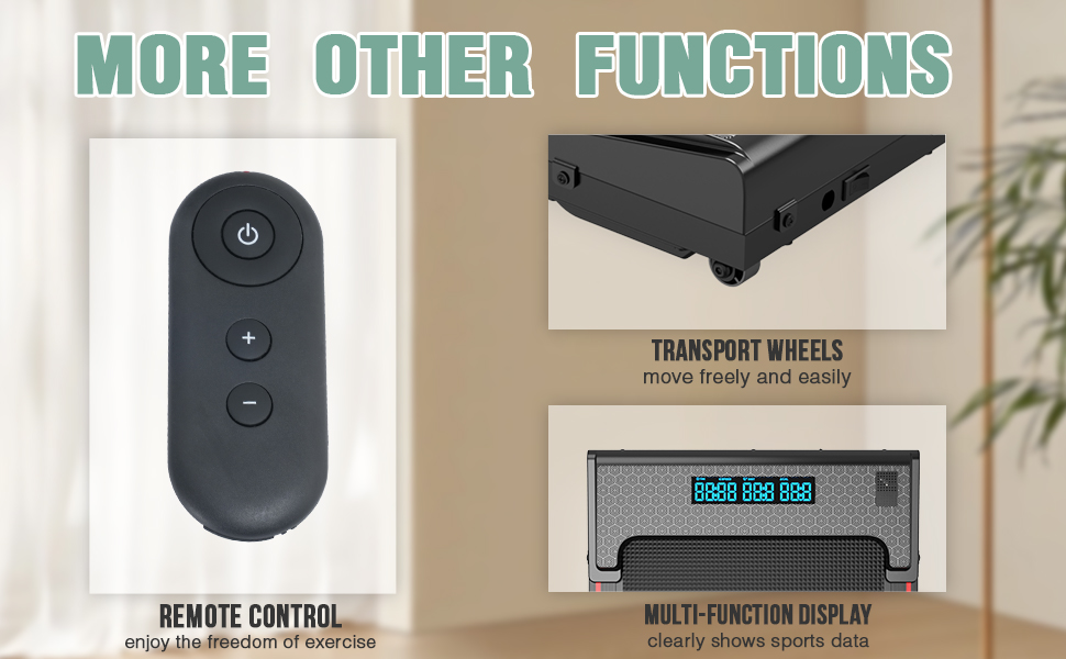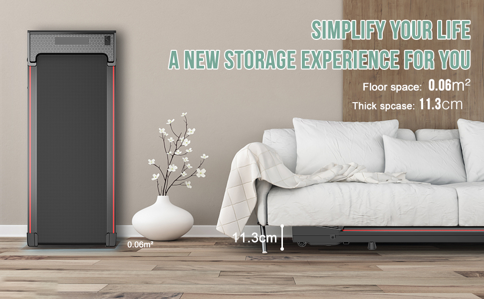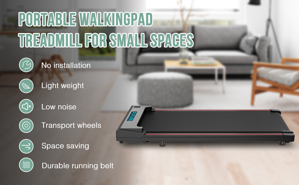 - 【Installation-Free and Space-Saving】 The compact and portable design of this treadmill requires no installation. It's ready to use right out of the box. This treadmill with its space-saving design and transport wheels makes it convenient to place it under a desk, in a corner, or even next to a sofa.